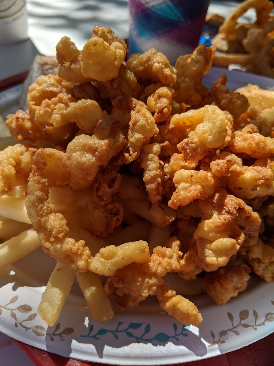 Clam strip plate & Lobster roll were great. Fries & onion rings were flavorful & crispy. Very friendly staff & had water bowls out for pets